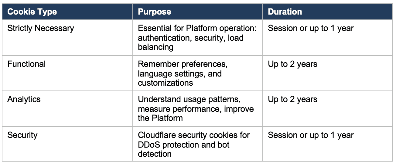 10.2 Types of Cookies We Use